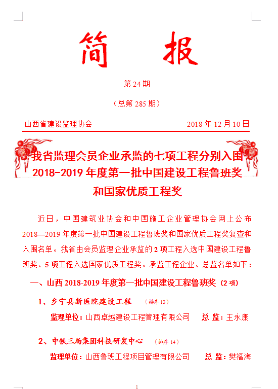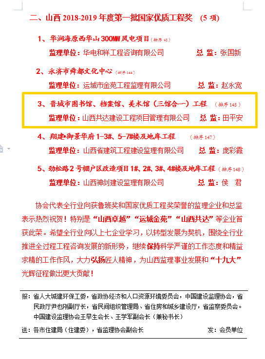 喜報(bào)!山西共達(dá)建設(shè)工程項(xiàng)目管理有限公司監(jiān)理的 晉城市圖書館、檔案館、美術(shù)館(三館合一)工程榮獲 《2018-2019年度第一批國(guó)家優(yōu)質(zhì)工程獎(jiǎng)》發(fā)布時(shí)間:2019-01-08 來源:本站 訪問量:次