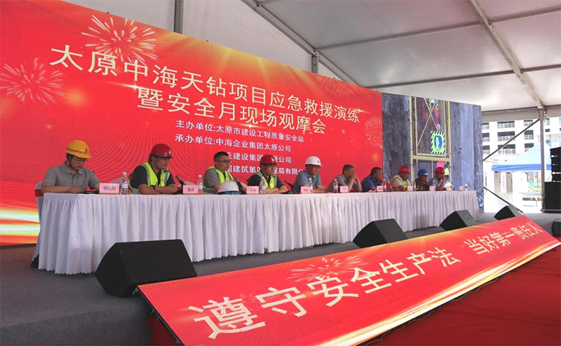 為深入開展全國第21個“安全生產(chǎn)月”系列主題活動,進一步加強太原市建筑施工質量安全生產(chǎn)工作,2022年6月30日上午9時,由太原市住房和城鄉(xiāng)建設局、太原市建設工程質量安全站主辦,中海企業(yè)集團太原公司、中天建設集團有限公司及中國建筑第四工程局有限公司共同承辦的太原市建筑工地應急救援演練暨“安全生產(chǎn)月”現(xiàn)場觀摩會在中海麗華北項目隆重舉行。