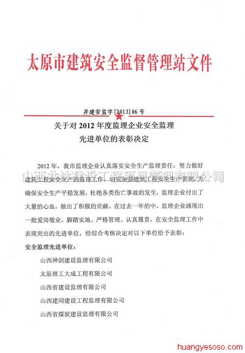 我公司被評(píng)為“2012年度監(jiān)理企業(yè)安全監(jiān)理先進(jìn)單位”