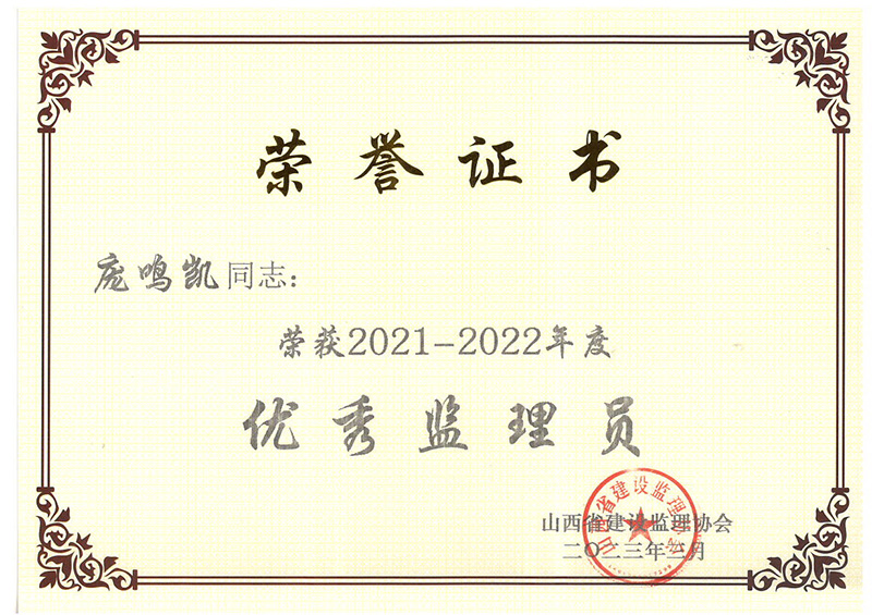 · 優(yōu)秀監(jiān)理員-龐鳴凱