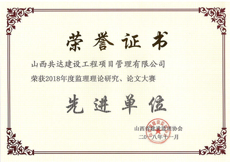 · 2018年監(jiān)理理論研究、論文大賽先進(jìn)單位