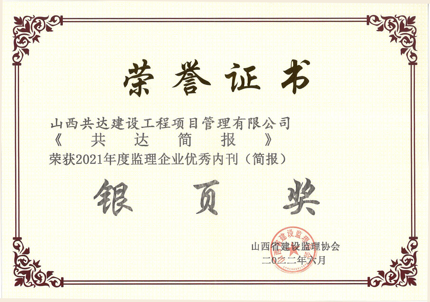 · 2021監(jiān)理企業(yè)優(yōu)秀內(nèi)刊銀頁獎(jiǎng)
