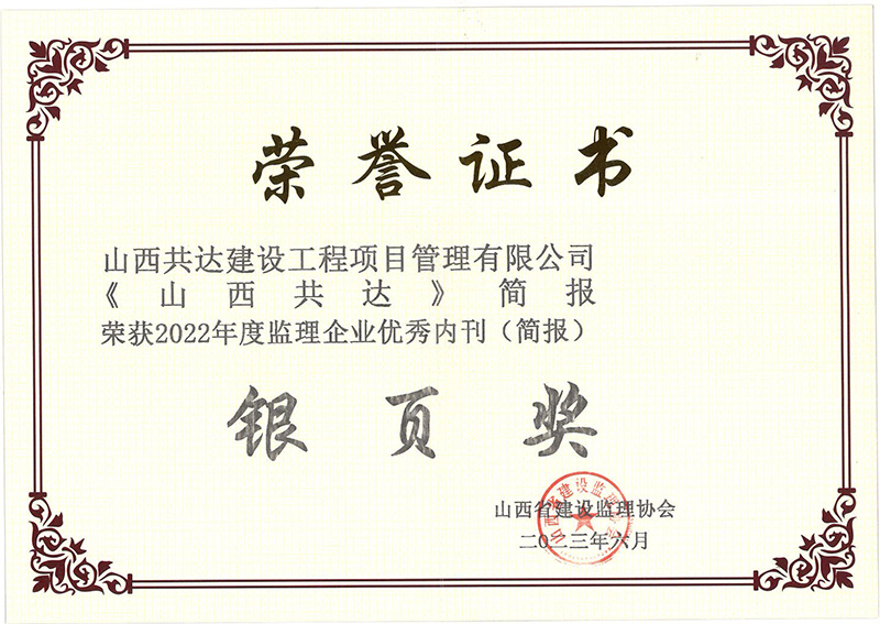 · 2022監(jiān)理企業(yè)優(yōu)秀內(nèi)刊銀頁獎(jiǎng)